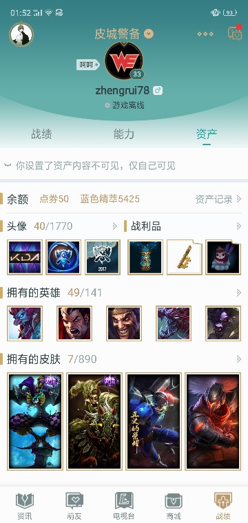 首页 > 租号大厅 > 英雄联盟 > 联盟三区/皮城警备 > 只有几个皮肤但是你可以拿去随便玩 想怎么玩怎么玩 只要不开挂不挂机就行