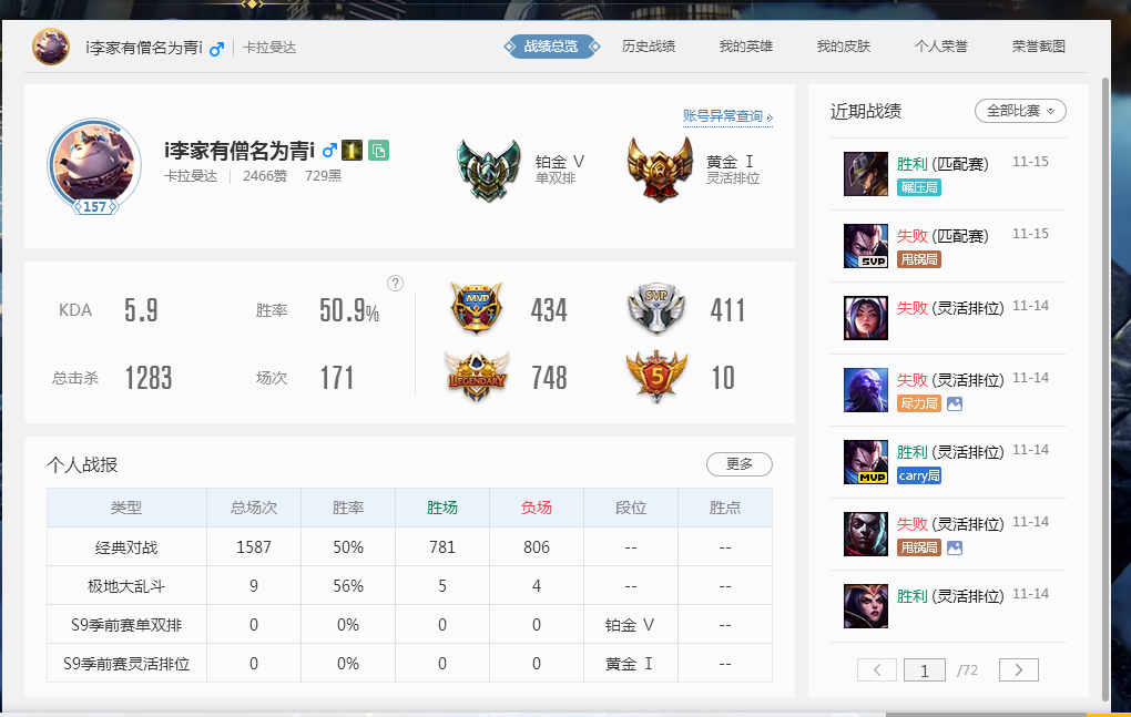 ID:i李家有僧名为青i (可以用wegame查实时段位情况)!禁止挂机逃跑请文明游戏,谢谢亲们!