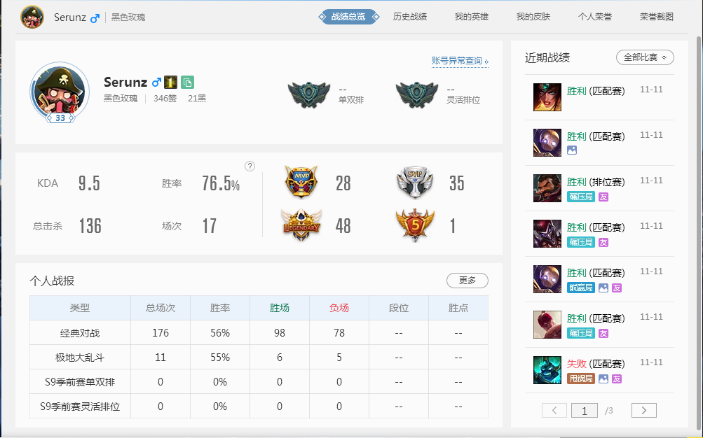 ID:Serunz (可以用wegame查实时段位情况)!禁止挂机逃跑请文明游戏,谢谢亲们!
