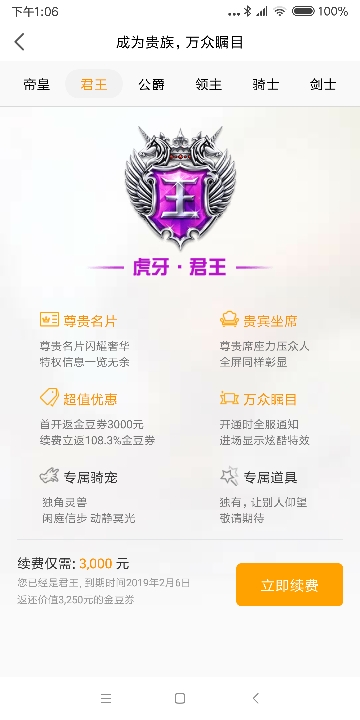 虎牙贵族君王账号出租,在直播间,给你不一样的身份!!!