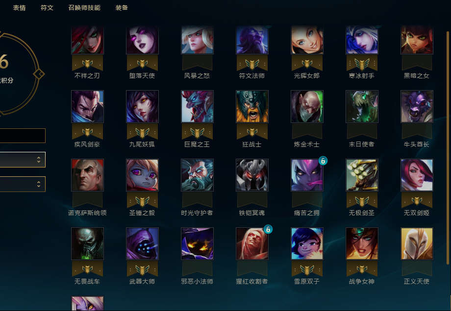 角色名:Pddttf 英雄:寒冰射手 九尾妖狐 无极剑圣 光辉女郎 风暴之怒 堕落天使 炼金术士 无畏战车 牛头酋长 不祥之刃 武器大师 猩红收割者 众星之子 圣锤之毅 审判天使 战争女神 时光守护者 符文法师 雪原双子 痛苦之拥 邪恶小法师 狂战士 巨魔之王 铁铠冥魂 黑暗之女