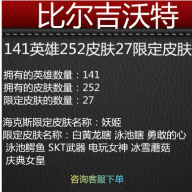 首页 > 租号大厅 > 英雄联盟 > 联盟四区/比尔吉沃特 > 【肥波租号】虐菜号/全英雄/252皮肤/白黄龙瞎/诺手周年限定/女枪周年限定/驯龙炮手/灌篮高手/黄