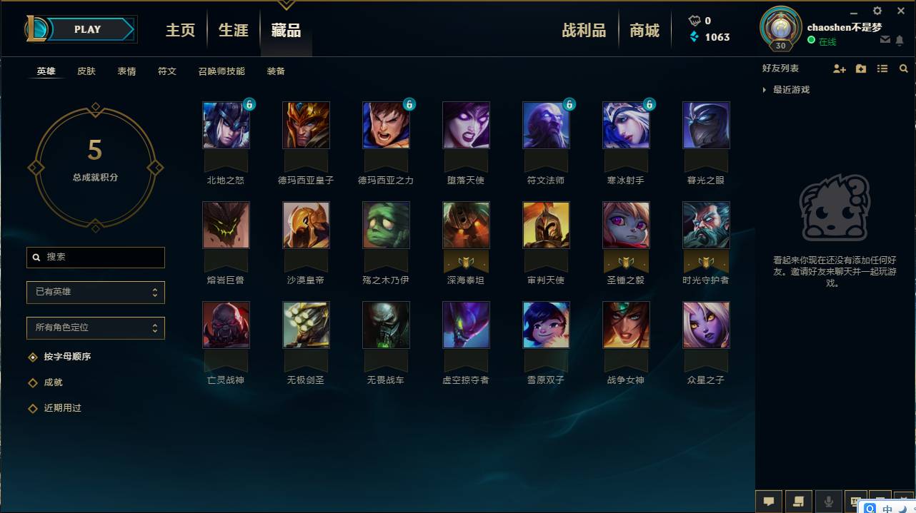 首页 > 租号大厅 > 英雄联盟 > 联盟一区/男爵领域 > 虐菜练手/男爵可排位小号$特价$出租/1元玩个够/21英雄/5皮肤(看图)/随便玩