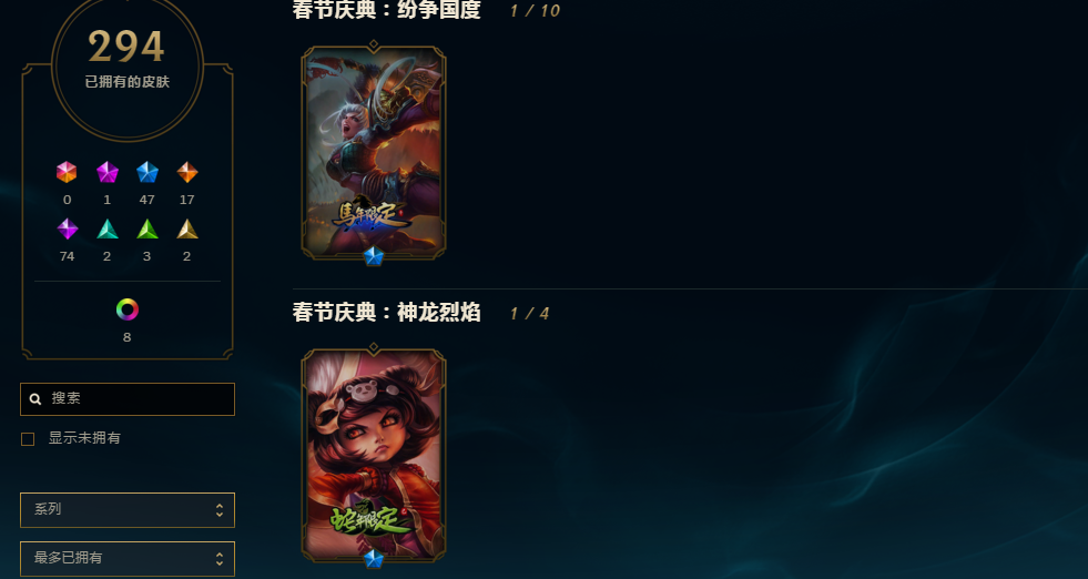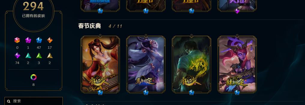 【搜索菲菲】300皮肤灵活青铜虐菜号/龙虾/龙瞎/龙的传人/羊年女警/6周年EZ/马年花木兰/龙年琴女/蛇年安妮/马年嫦娥/星之守护者拉克丝/电玩琴女/死兆星锤石/源计划艾希