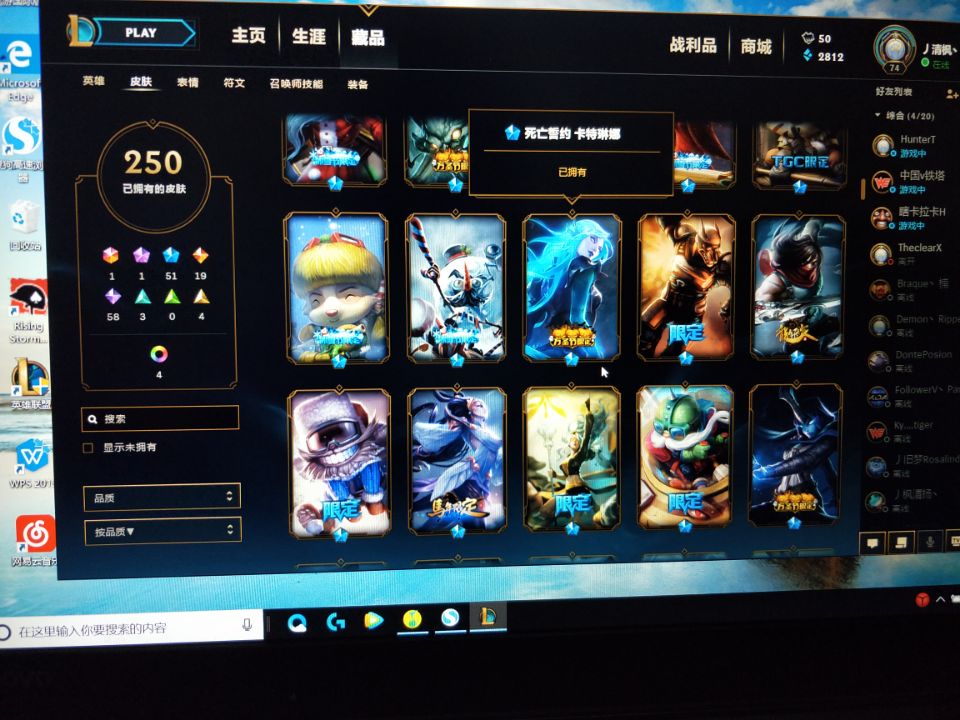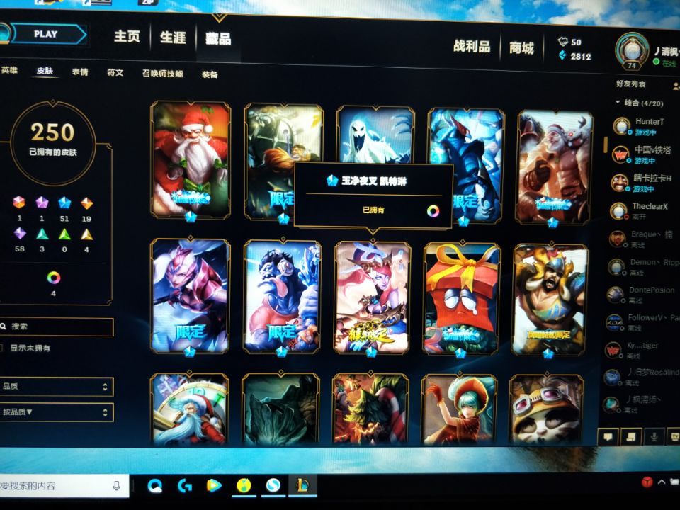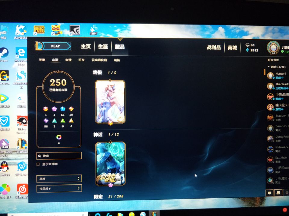 艾欧尼亚龙瞎号,大元素使,美猴王,250皮肤,84英雄,黄金段位
