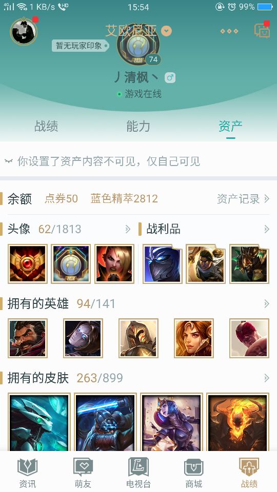 首页 > 租号大厅 > 英雄联盟 > 艾欧尼亚/艾欧尼亚 > 艾欧尼亚龙瞎号,大元素使,美猴王,250皮肤,84英雄,黄金段位