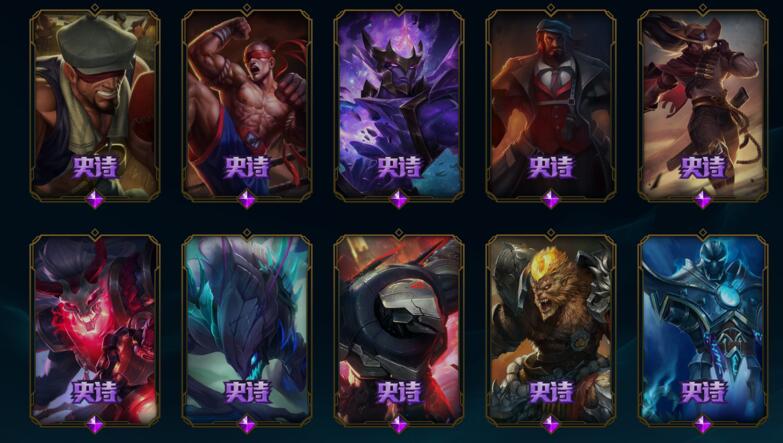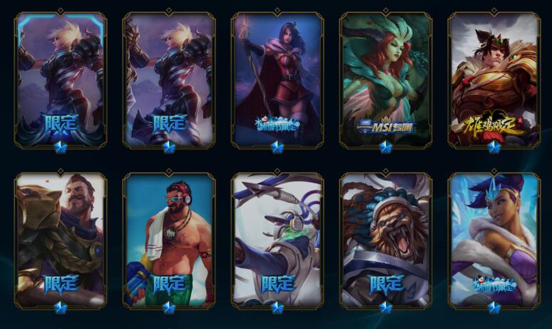 一共106个皮肤 21款限定 6款传说 38款史诗 其他类皮肤40 内含 星之守护者 索拉卡 战场Boss 布里茨