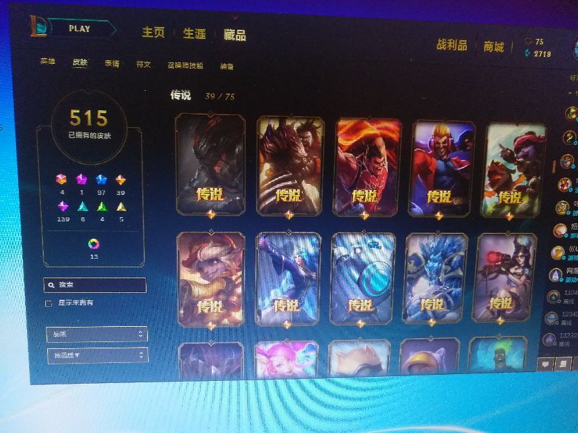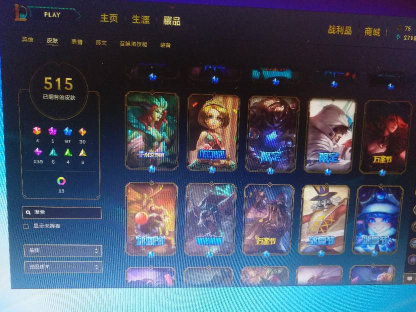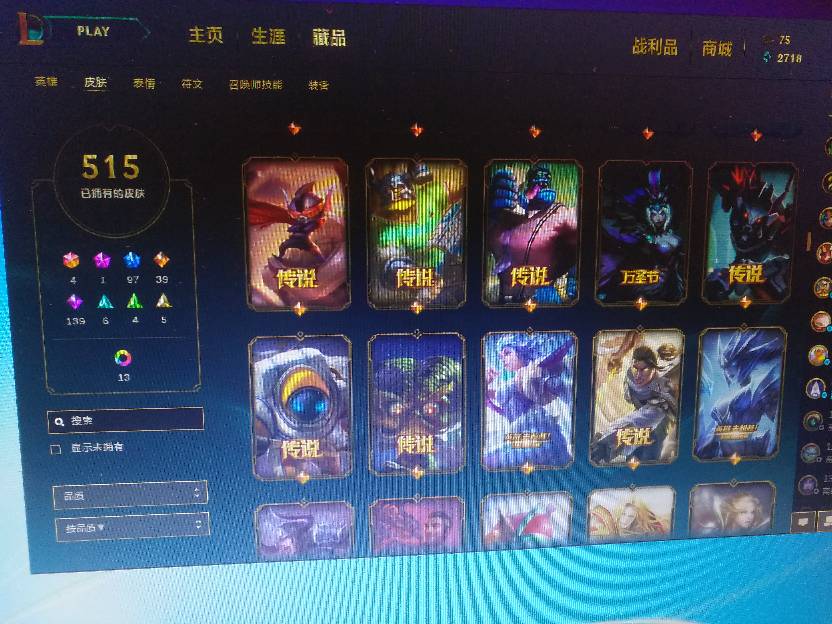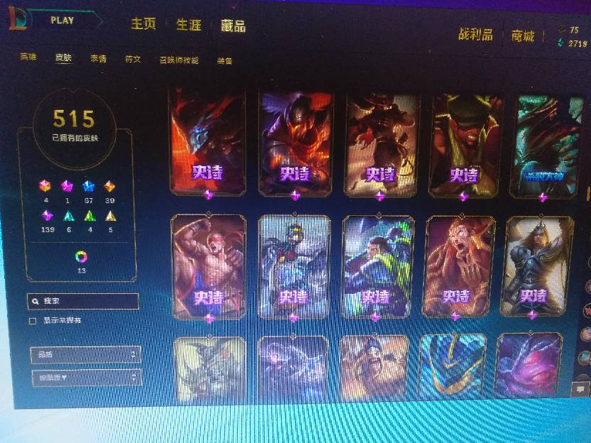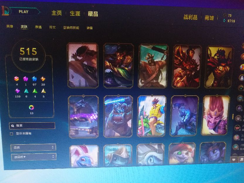 515个皮肤,蛮王奥斯曼大帝、花木兰、泳池瞎、黑夜亚索……