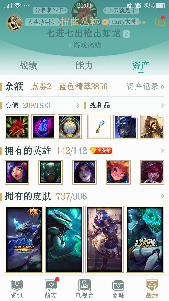 皮肤多,年限多,装逼带妹的最佳选择,物美价廉,希望不要逃跑,挂机。