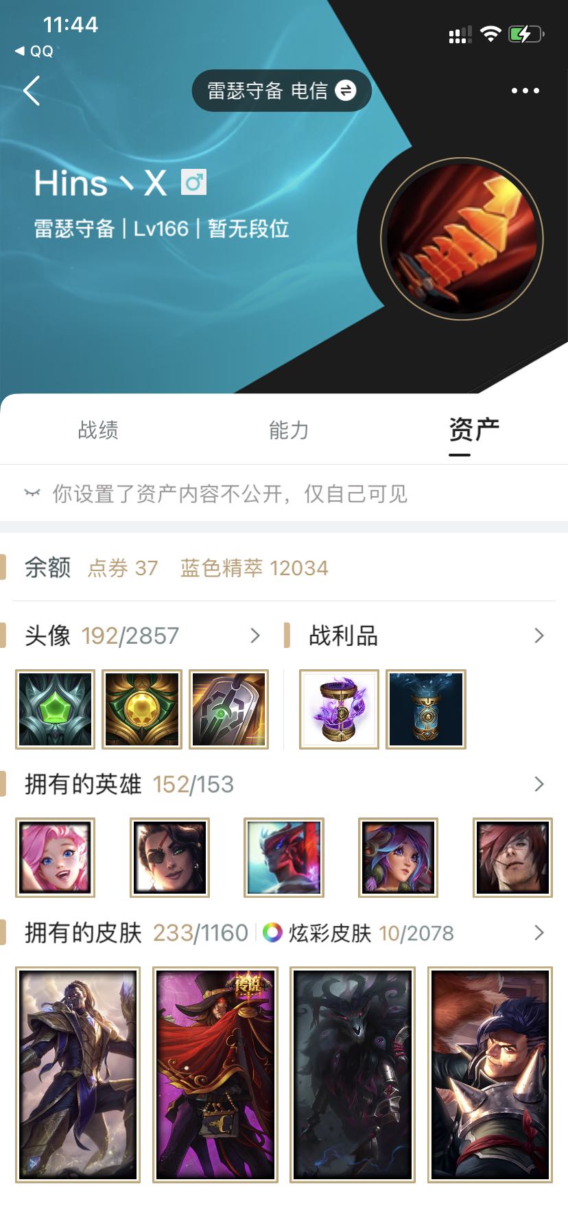 (出租撸啊撸账号)雷瑟守备号,全英雄,232款皮肤。