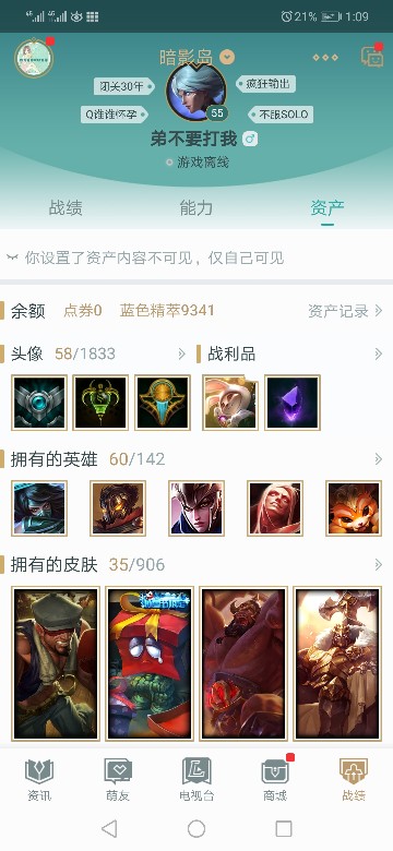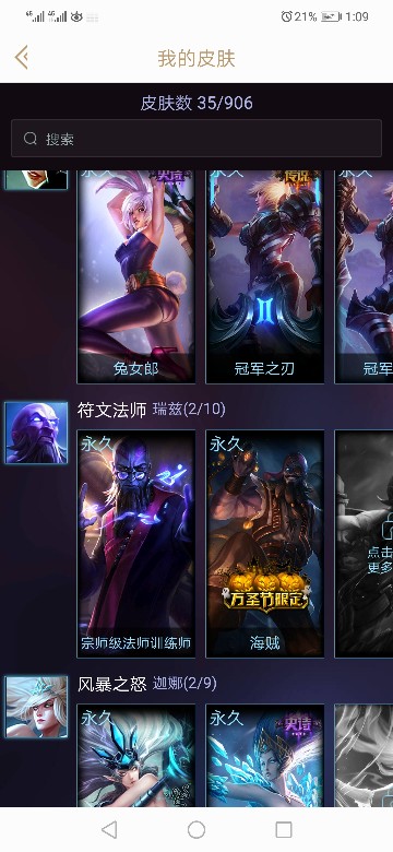⑥⑤个英雄/③⑤个皮肤/冠军之刃/阿木木冰雪限定/美酒特使/地下拳王