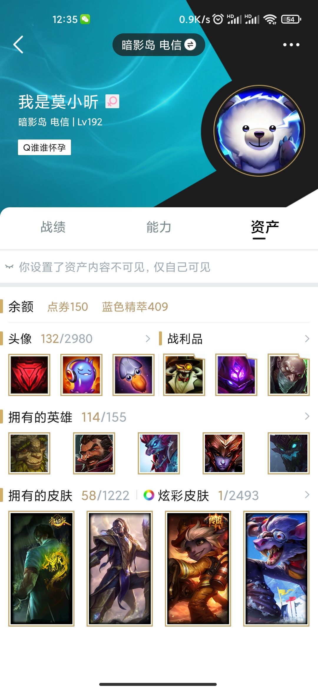 首页 > 租号大厅 > 撸阿撸 > 电信区/暗影岛 > 暗影岛白银号,只有几十个皮肤,如果跟好友开黑的话名字比较好搜索