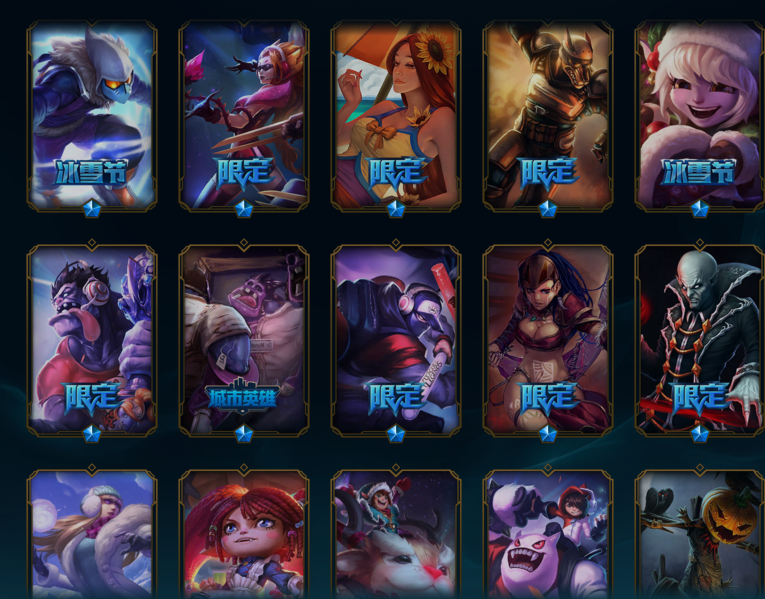 全英雄 226皮肤 电玩瑞文、胜利男神男枪、胜利女神奥利安娜、灌篮高手、女主播、貂蝉 可排位