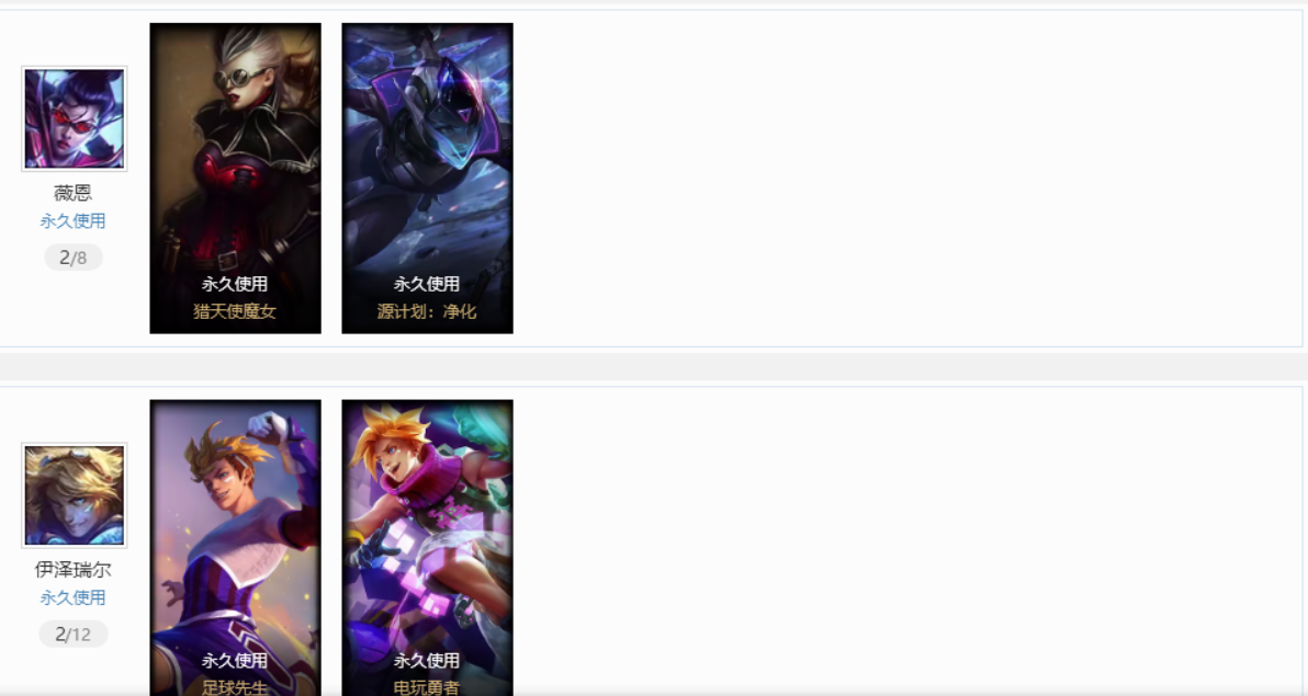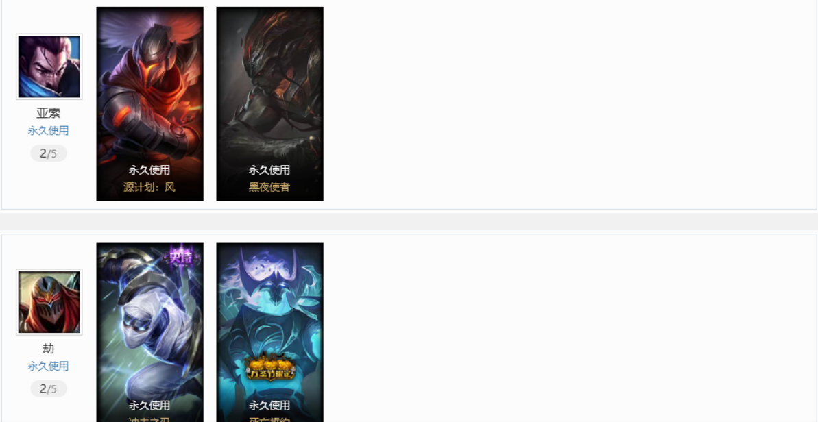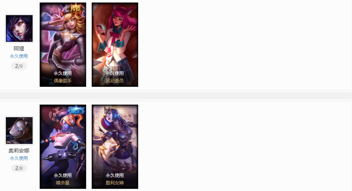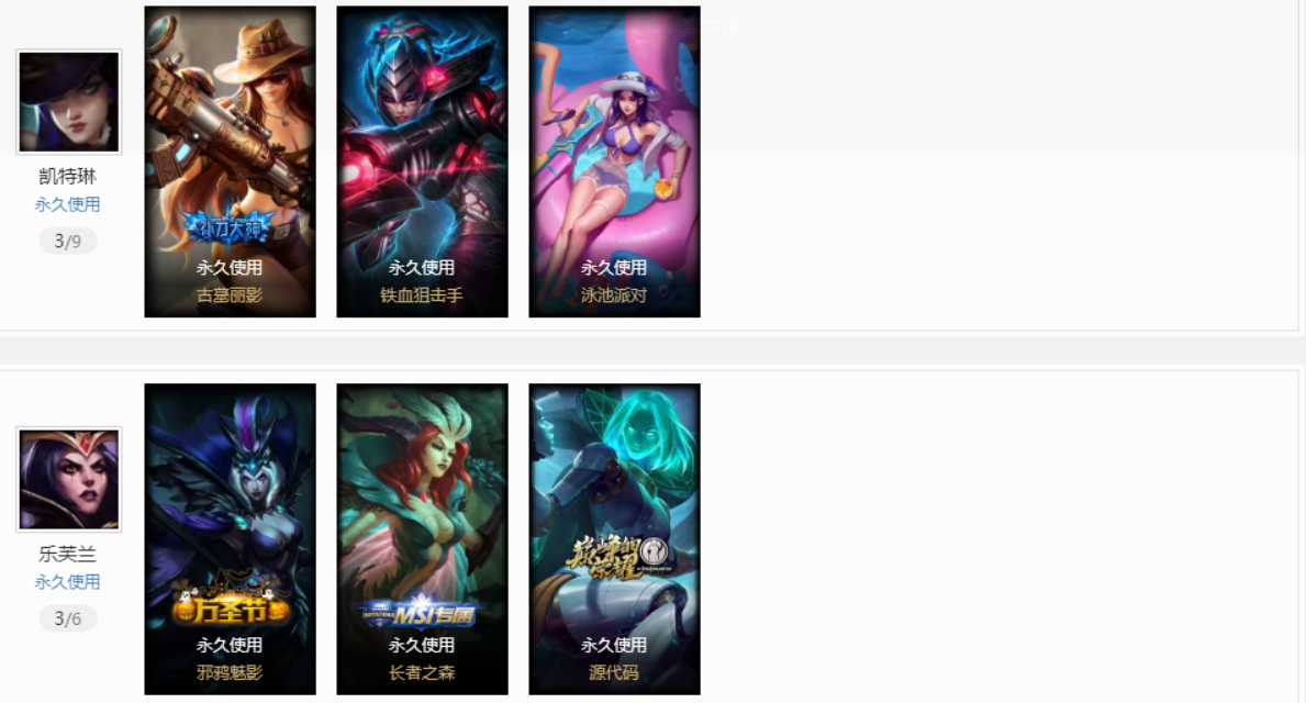 祖安妹子账号星之守护光辉,拉克丝;万圣节妖姬,劫;原计划vn,js,亚索;地底世界卡牌;黑夜压缩,黎明瑞文;小蜜蜂timo;苹果机器人89皮肤