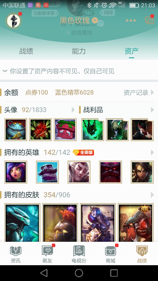 首页 > 租号大厅 > 英雄联盟 > 黑色玫瑰/黑色玫瑰 > 全英雄354皮肤铂金4