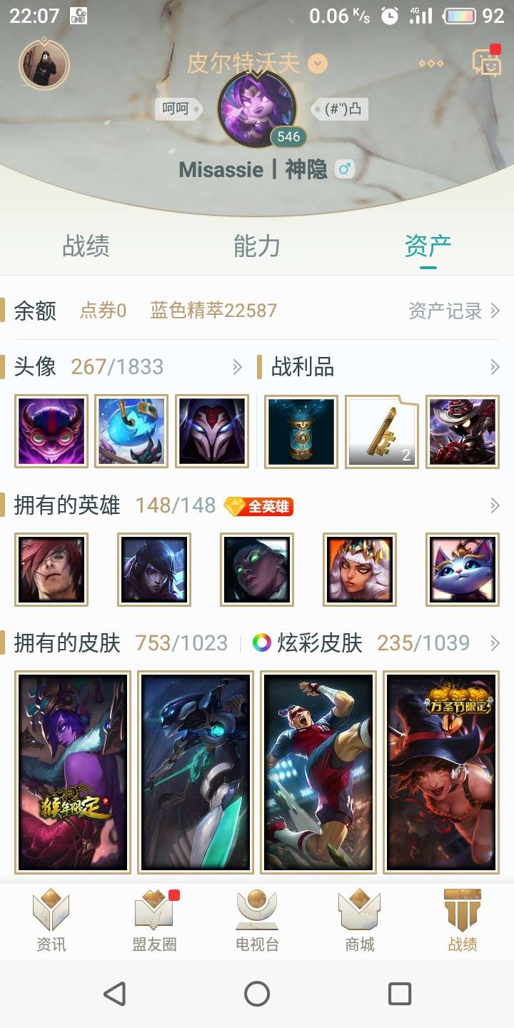 • 游戏区服:英雄联盟 / 联盟一区 / 皮尔特沃夫