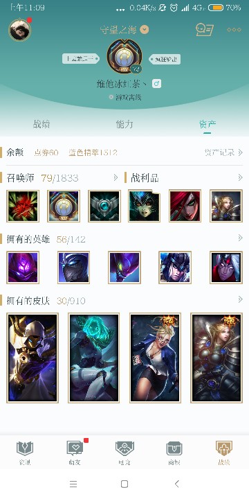 质量皮肤号 基本你玩的英雄都有皮肤 寒冰源计划 劫的冲击 瞎子地下拳王 惩戒之箭的苍穹之光 还有豹子冰雪节 女主播 什么的