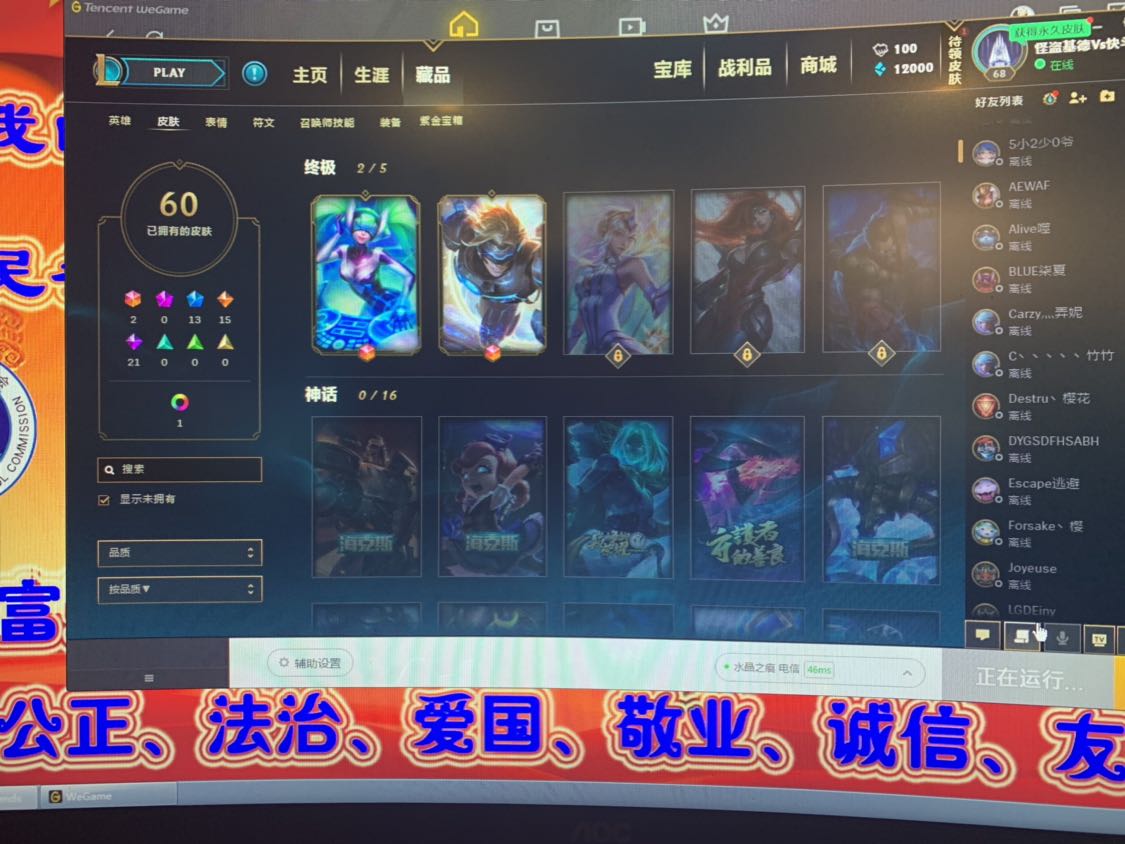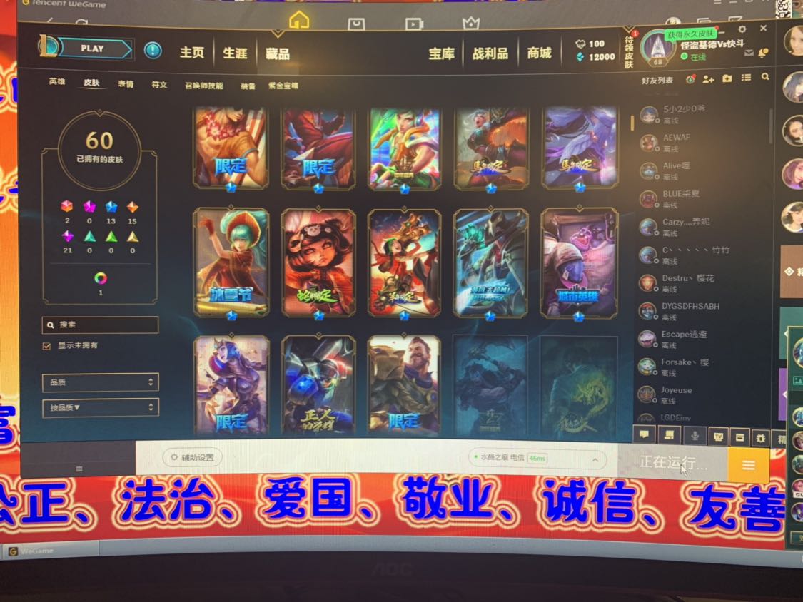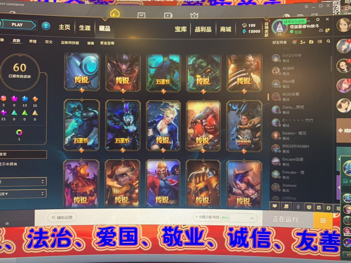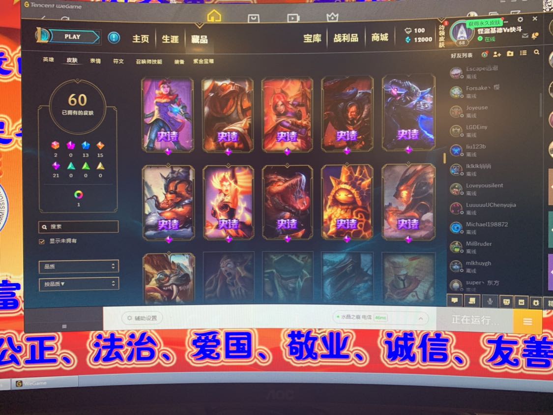 瑞文花木兰,奉先吕布,赵云子龙,关羽云长,未来战士,嫦娥马年限定,安妮蛇年限定,豹女199,琴女dj ,金克丝羊年限定,卡牌地底世界