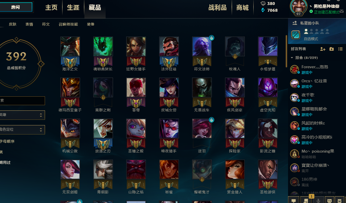 首页 > 租号大厅 > 英雄联盟 > 艾欧尼亚/艾欧尼亚 > 白银黄金☆英雄100+☆热门英雄皮肤64☆带妹☆