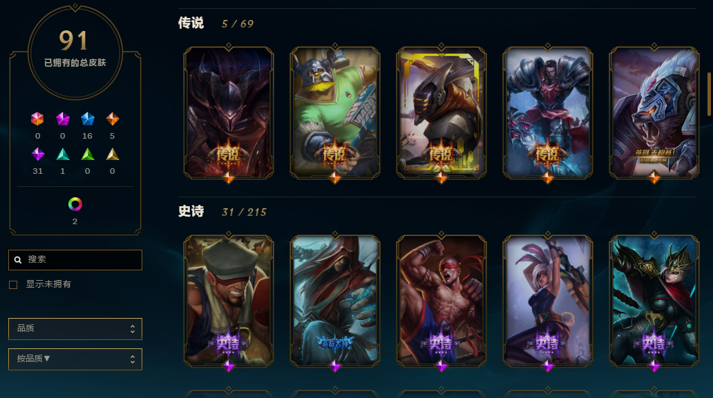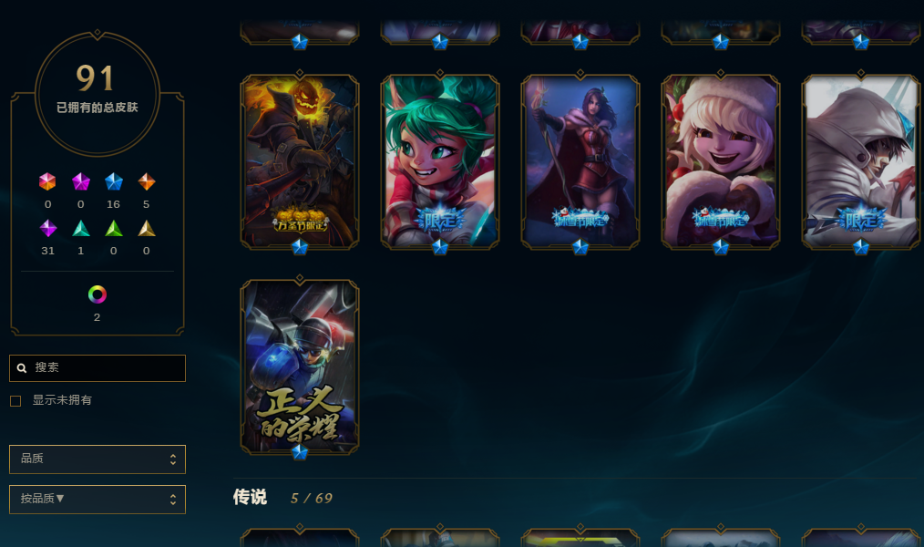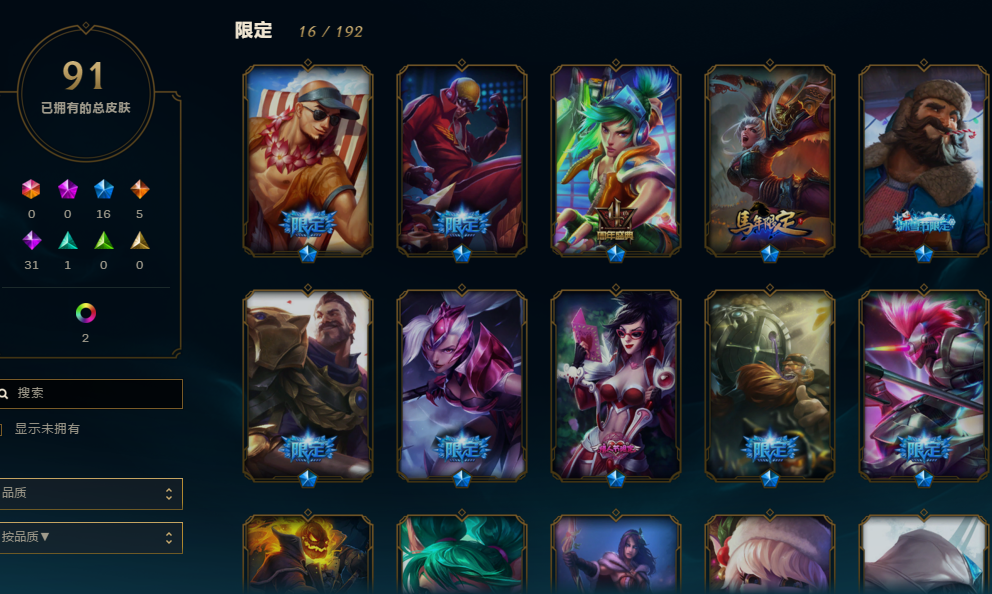 首页 > 租号大厅 > 英雄联盟 > 联盟四区/比尔吉沃特 > (U质出租)123个英雄 91个皮肤 可以排位。其他看资料低价出租!