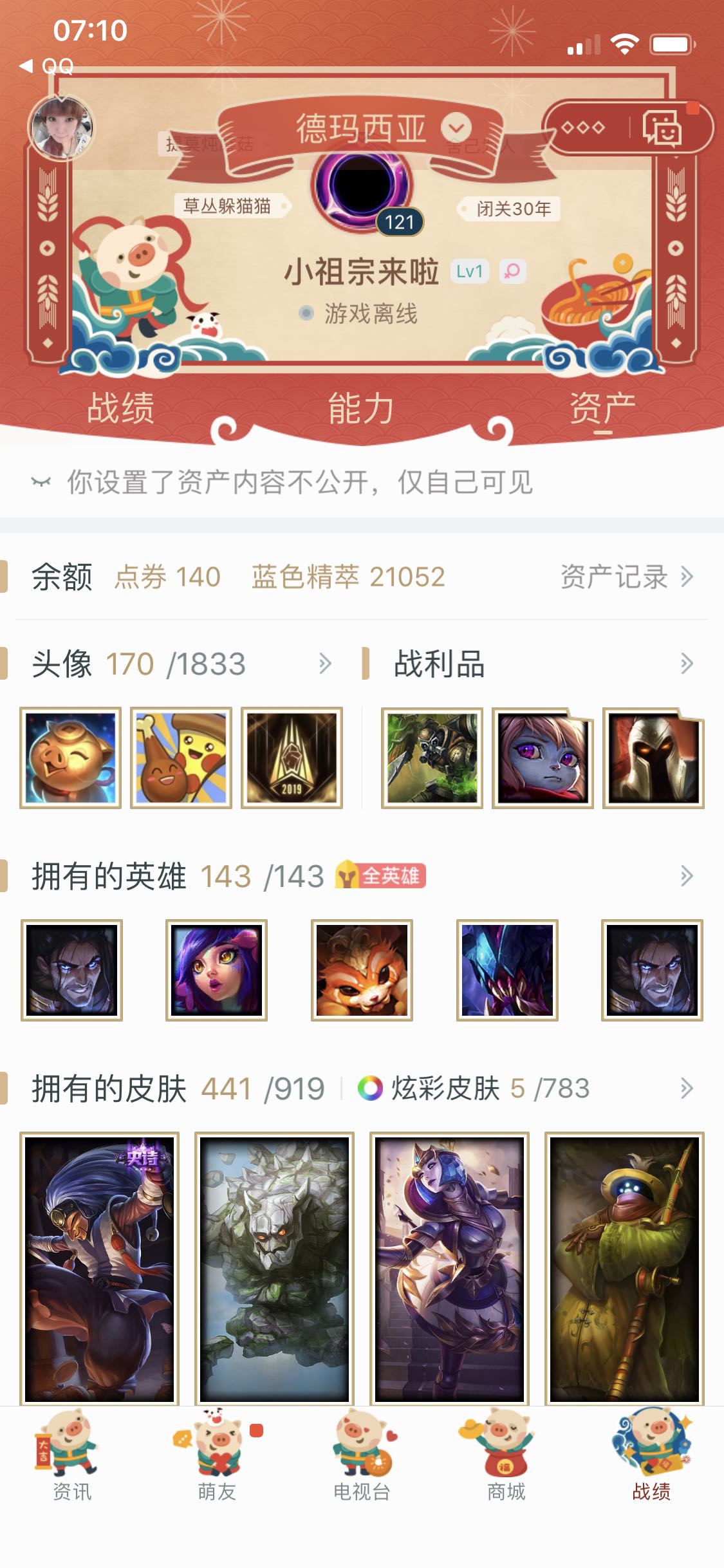 首页 > 租号大厅 > 英雄联盟 > 联盟五区/德玛西亚 > 「晴天租号」德玛西亚全英雄👑445皮肤👑龙虾飞龙在天👑龙刀👑花木兰马年限定👑等等