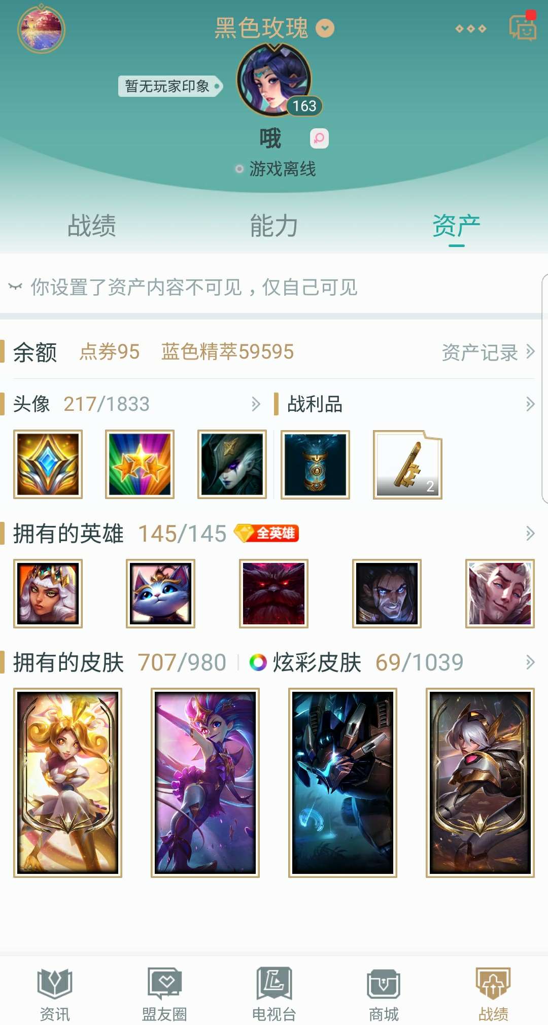 首页 > 租号大厅 > 英雄联盟 > 黑色玫瑰/黑色玫瑰 > 黑色玫瑰全英雄,707皮肤。电玩女神,冰雪节情人节,泳池派对,至臻vn拉克丝女警刀妹妮蔻,龙虾龙刀龙猴,各种…