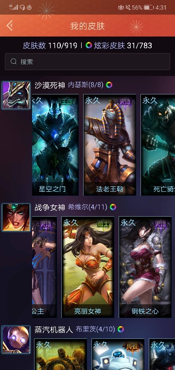 英雄109个皮肤110几个绝版皮肤终极两个