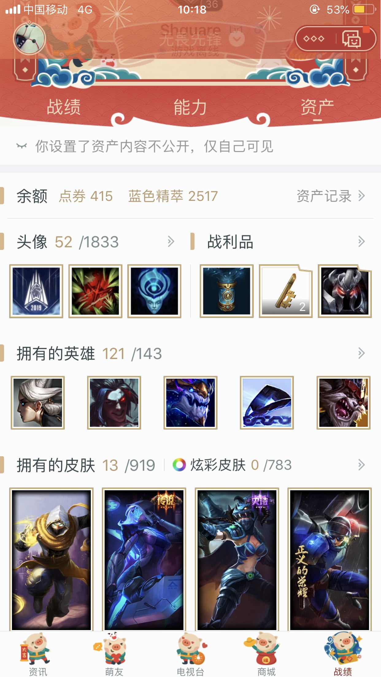 121一个英雄 16个皮肤 排位都可以打 潘森 猴子vn 木木 天使,有图片自己去看!