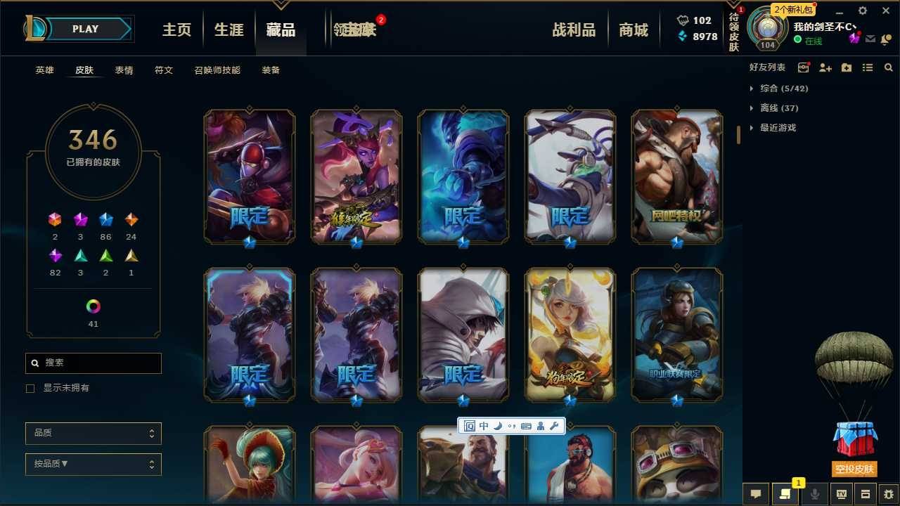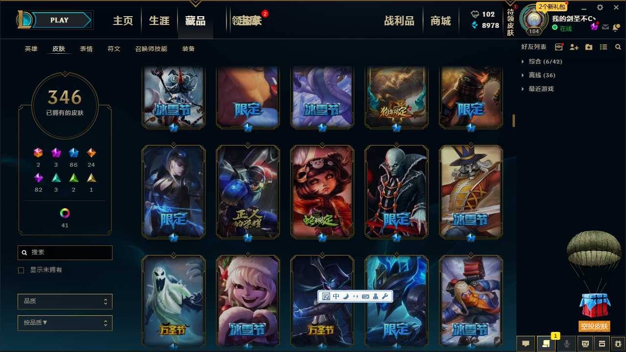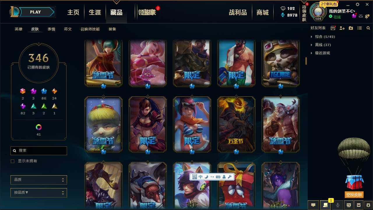 340皮肤,斩星魔剑,海克斯人马安妮,钢铁军团拉克丝,猴年限定*3狗年全炫彩,各种年限,冰雪节限定,万圣节限定,
