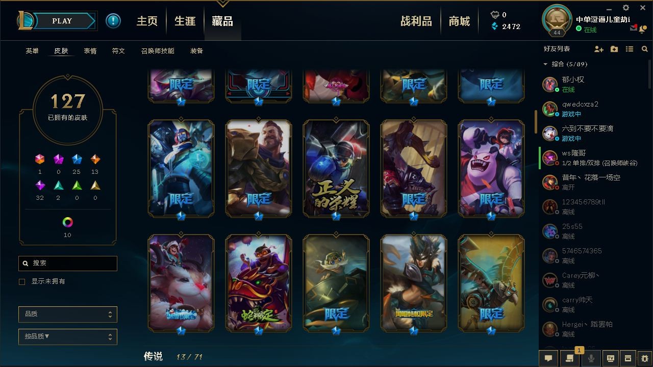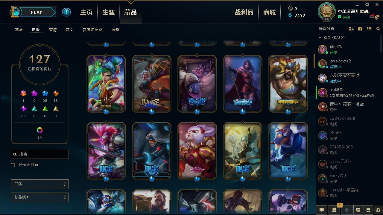 首页 > 租号大厅 > 英雄联盟 > 联盟二区/卡拉曼达 > ⭐U质出租⭐107个英雄⭐127个皮肤