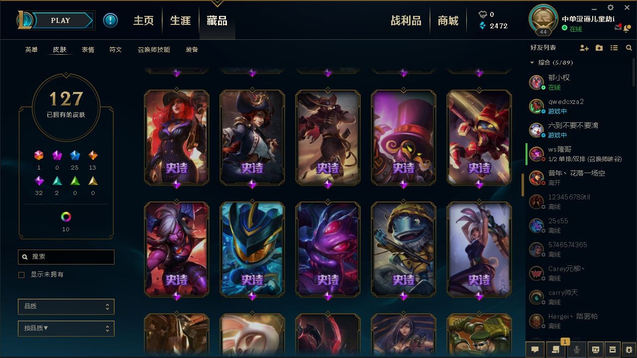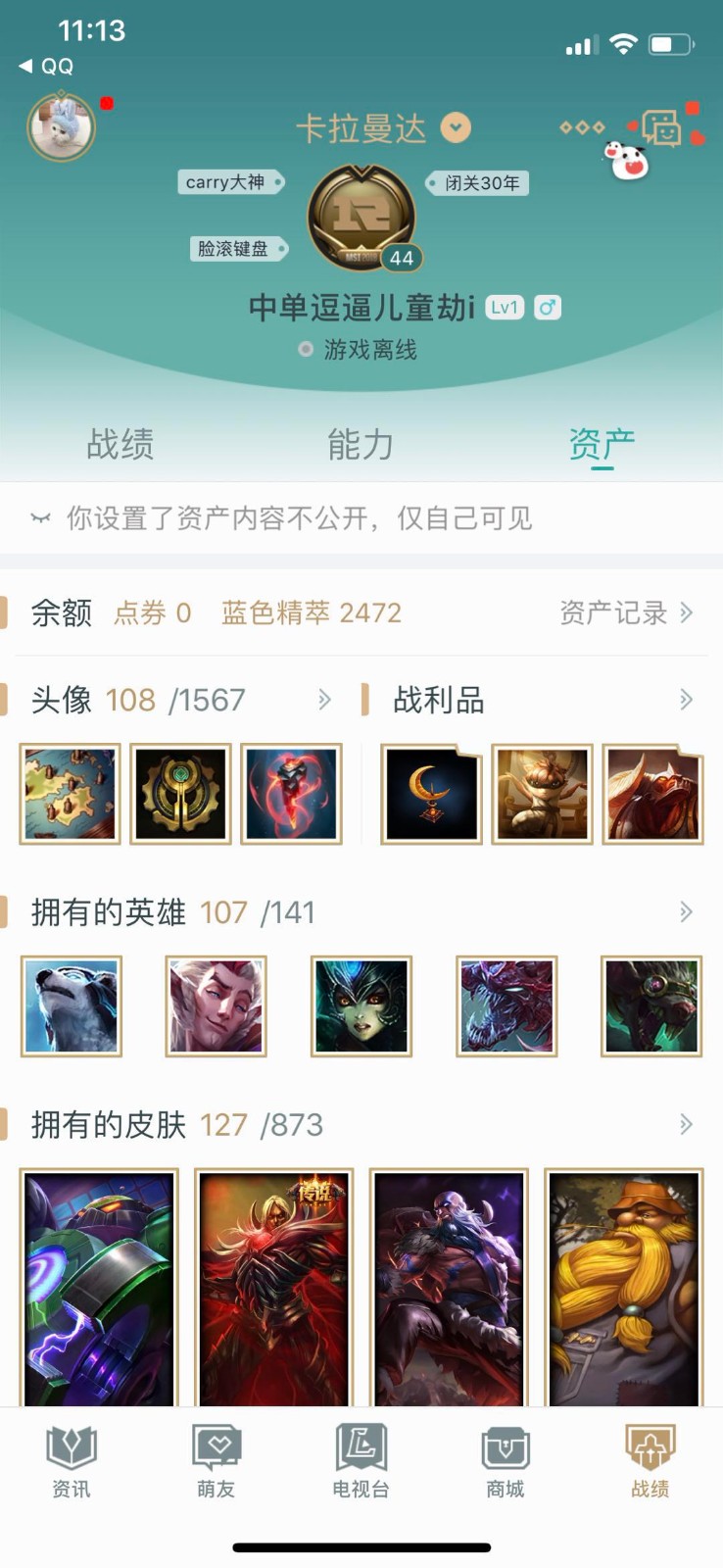 ⭐U质出租⭐107个英雄⭐127个皮肤