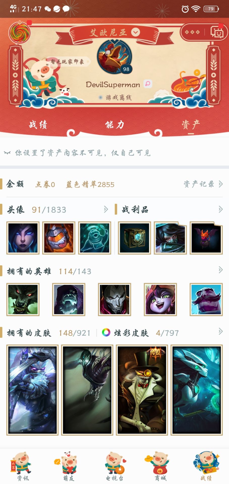 首页 > 租号大厅 > 英雄联盟 > 艾欧尼亚/艾欧尼亚 > 【搜索虐菜小号】114英雄152皮肤 电一青铜虐菜神号