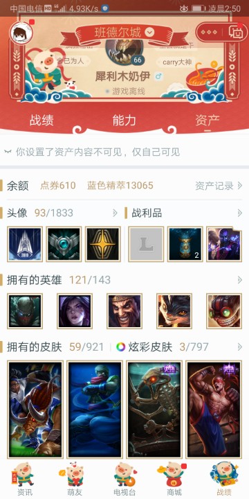 首页 > 租号大厅 > 英雄联盟 > 联盟三区/班德尔城 > 英雄联盟121英雄59皮肤闭月之颜美猴王DJ张辽吕布skt皮肤