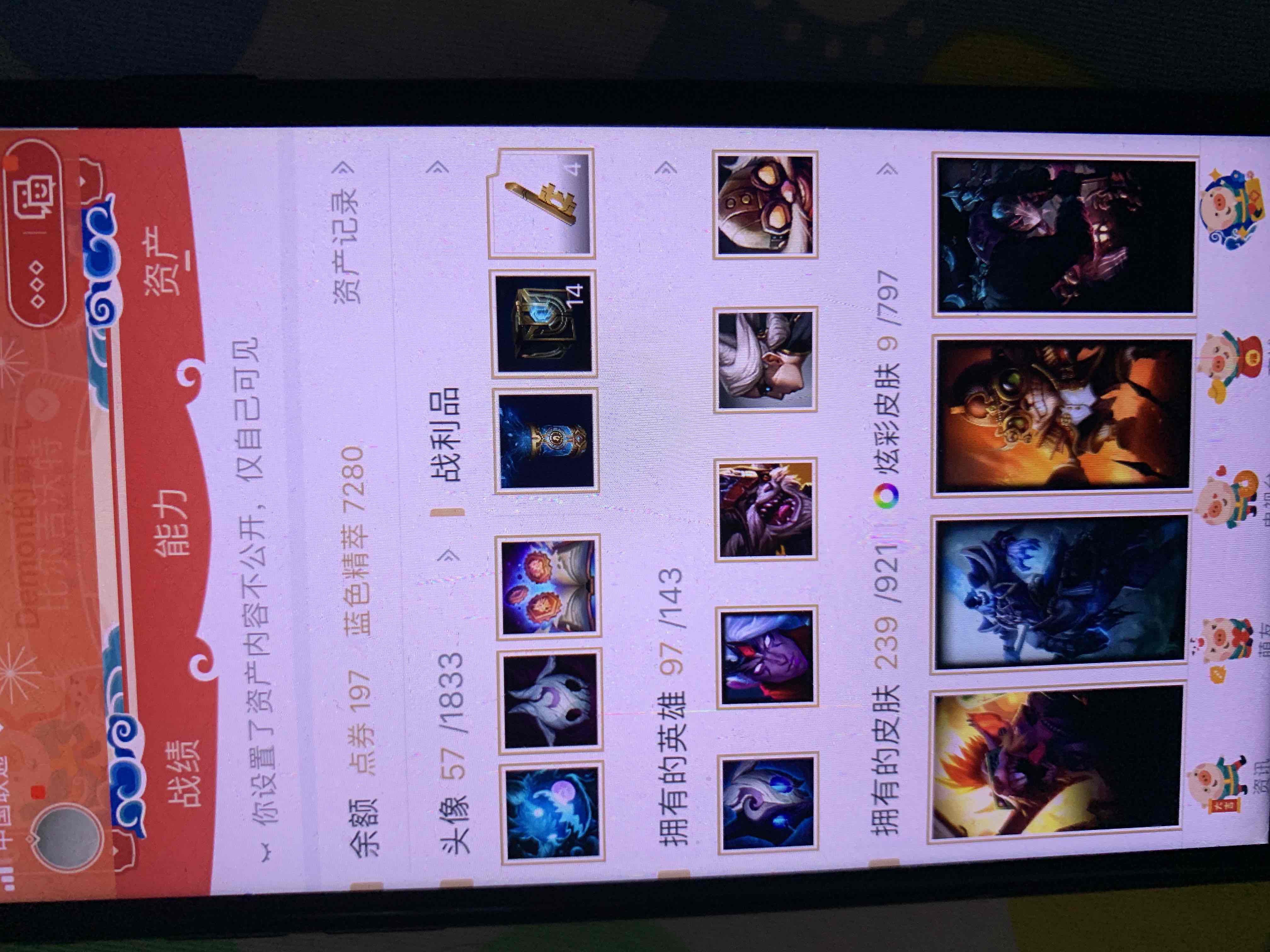 英雄97个 皮肤239个炫彩皮肤9个 彩虹马