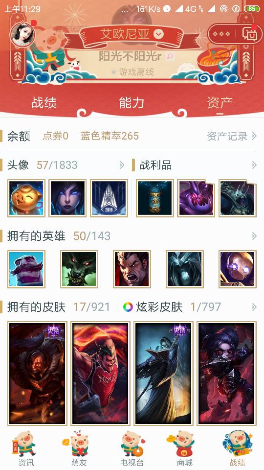 电一艾欧尼亚有钱人盟,50个英雄,17个皮肤。灌篮高手/三味真火/训龙女巫/人鱼妖姬源代码