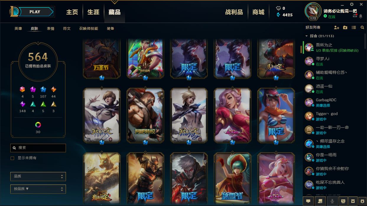 首页 > 租号大厅 > 英雄联盟 > 联盟一区/祖安 > 祖安568皮肤丨全英雄丨IG冠军皮肤签名套丨龙瞎17年限丨至臻VN 光辉 阿卡丽丨西部魔影套丨银河魔装机神套丨电…
