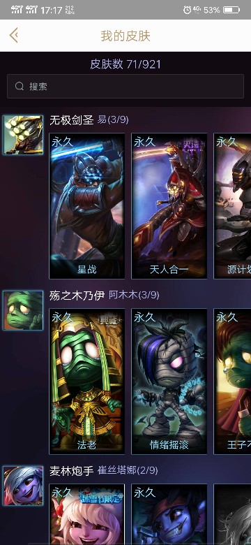 皮肤原计划剑侠,魔法少女拉克丝,灌篮高手洛手,等几个限定皮肤