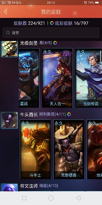 200多个皮肤,满英雄!玉剑系列地狱火MM等等!