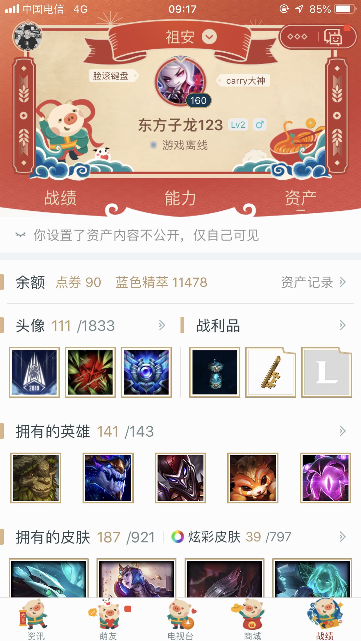 首页 > 租号大厅 > 英雄联盟 > 联盟一区/祖安 > 141英雄,187皮肤,龙猴,电玩琴女,吕布,御剑男刀等