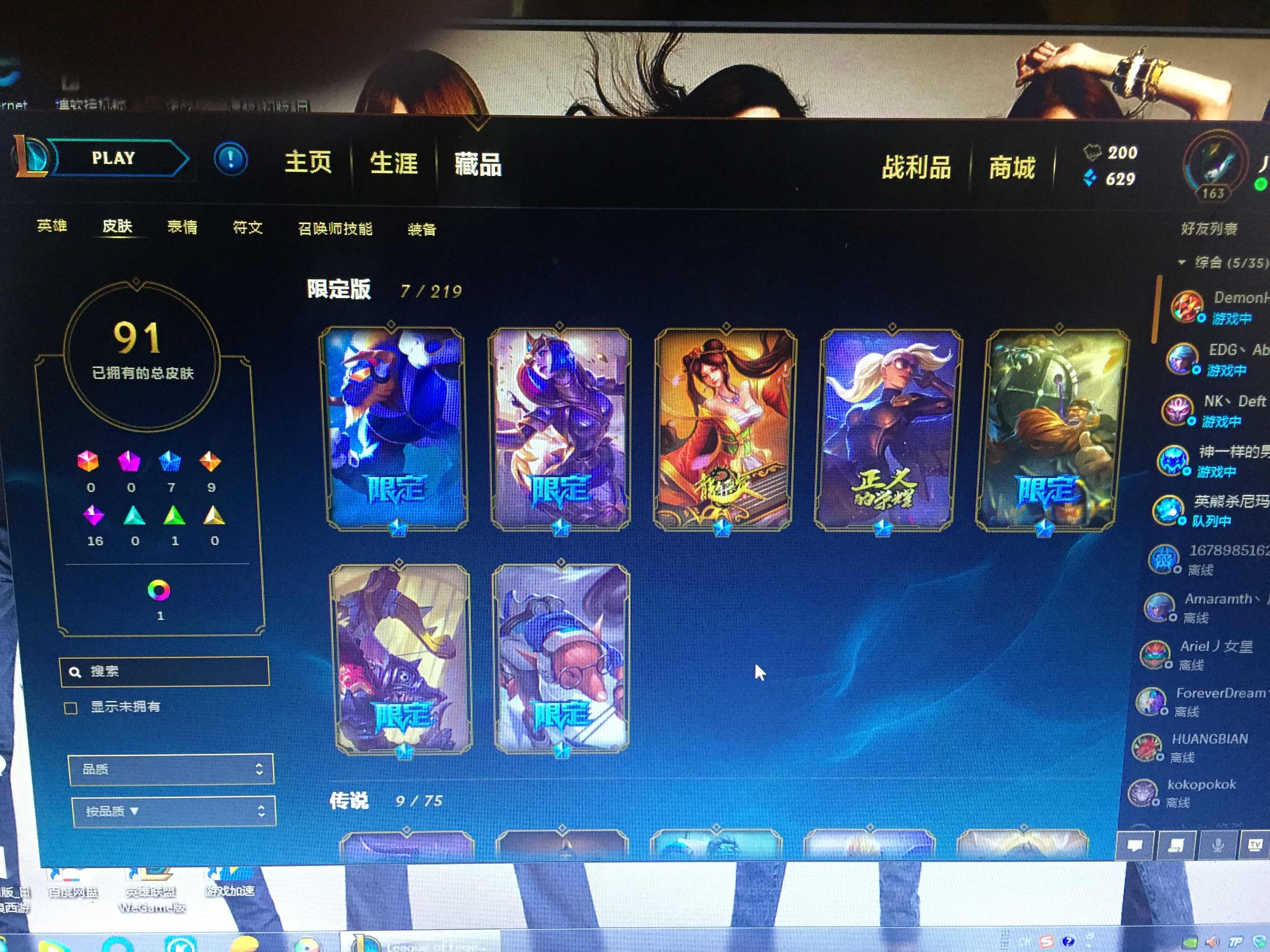 142英雄。岩雀没有。其他的都有。100皮肤。