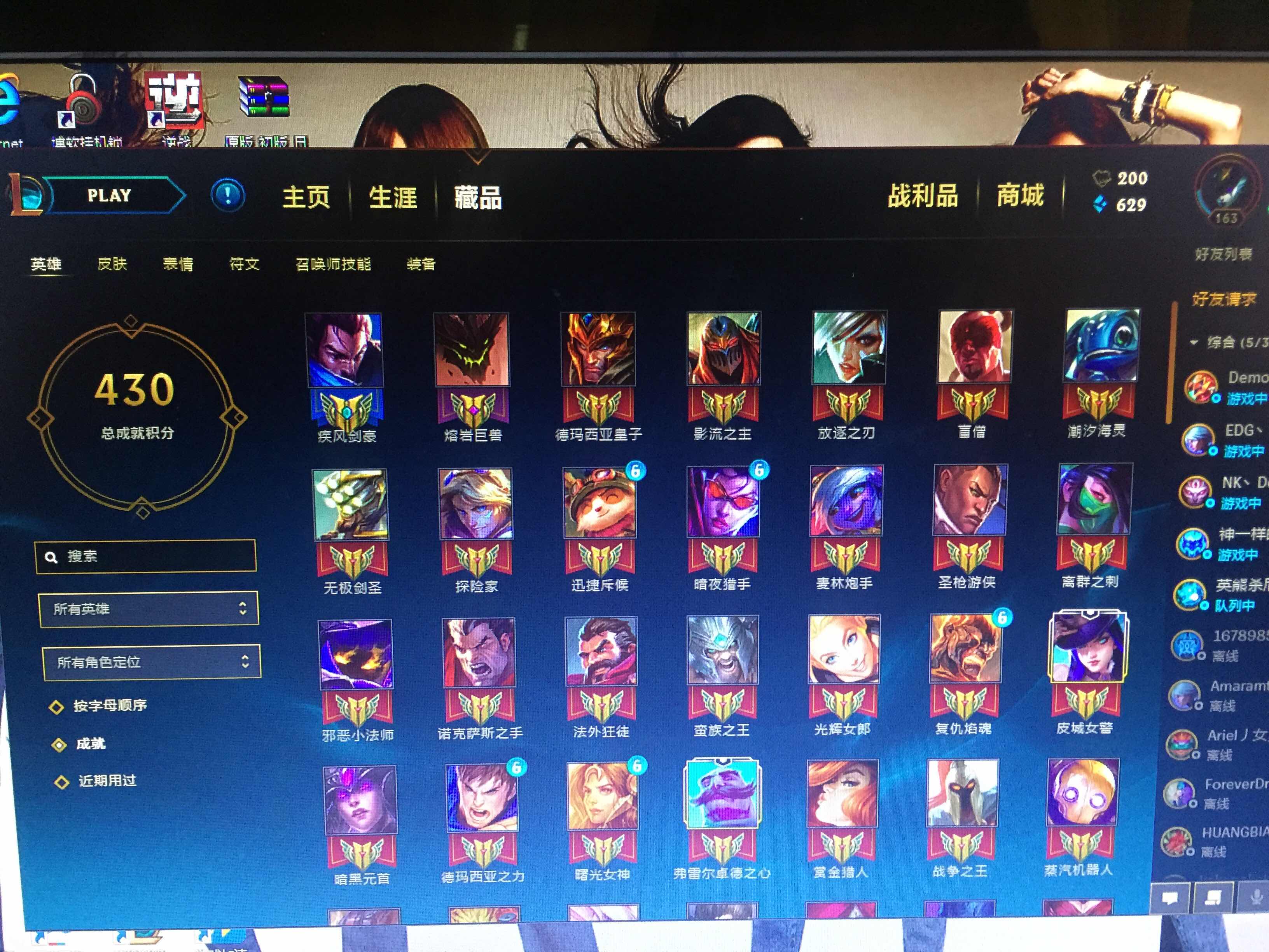 首页 > 租号大厅 > 英雄联盟 > 联盟三区/钢铁烈阳 > 142英雄。岩雀没有。其他的都有。100皮肤。
