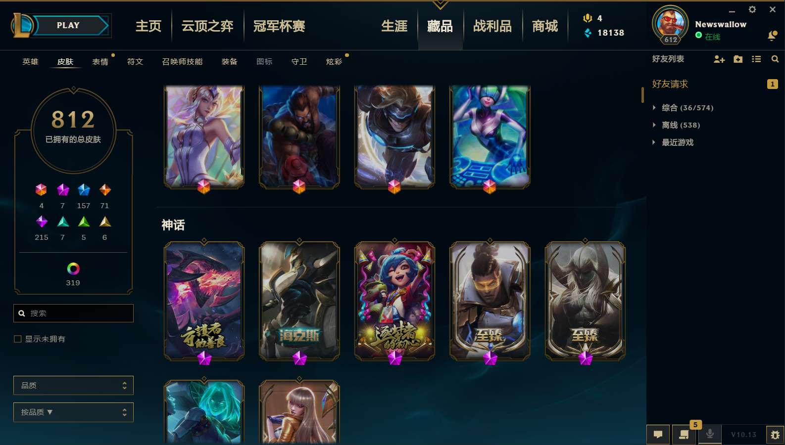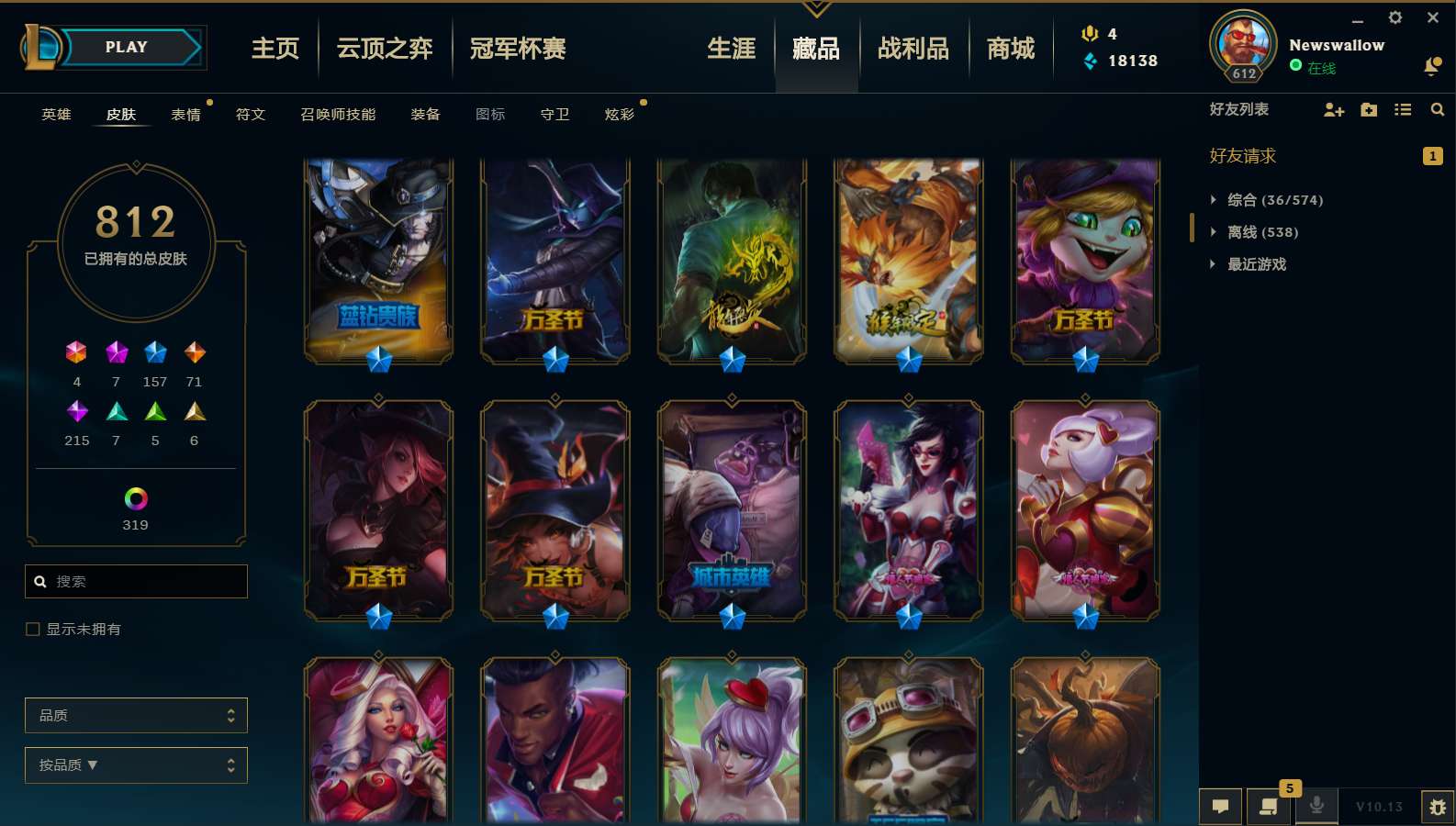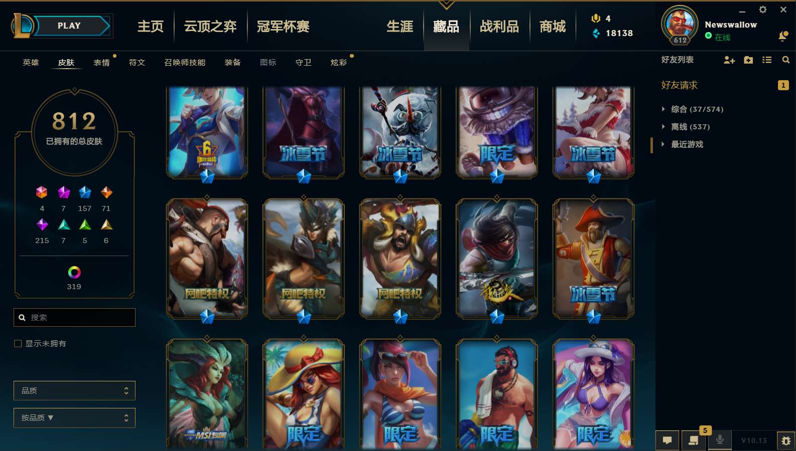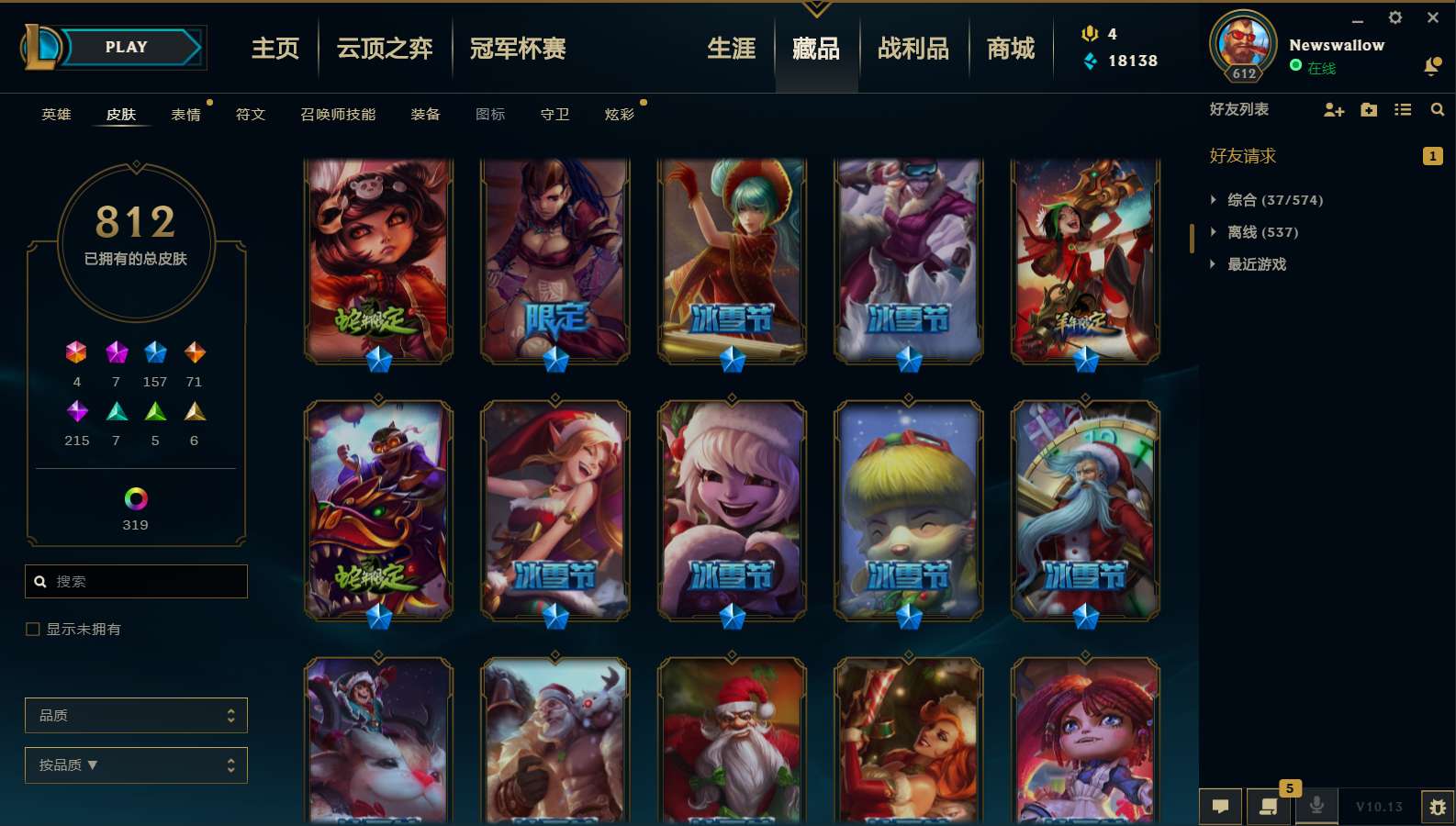 《网一真1300皮肤/原皮812/全英雄》《至臻卢锡安卡莎各种皮肤任你耍~龙瞎龙刀~冰原狙击》