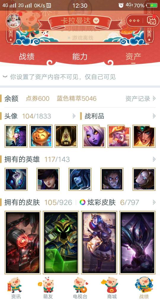 117英雄,105精品皮肤,欢迎排位练手