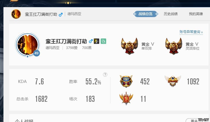 • 游戏区服:英雄联盟 / 联盟五区 / 德玛西亚