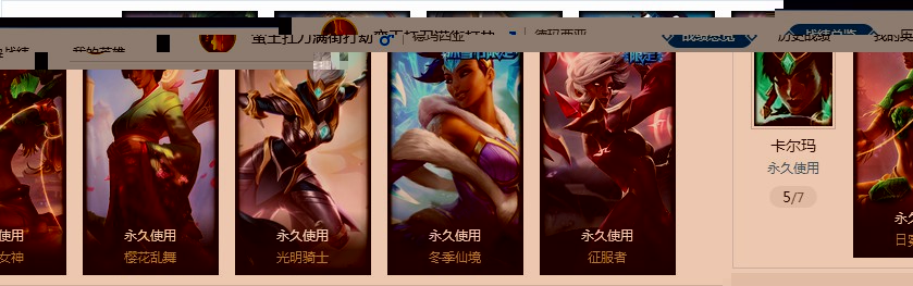 德玛西亚.610皮肤.满英雄免押金出租./小时只需1元即可.有蓝龙虾.各种年限.冰雪节.炫彩!!
