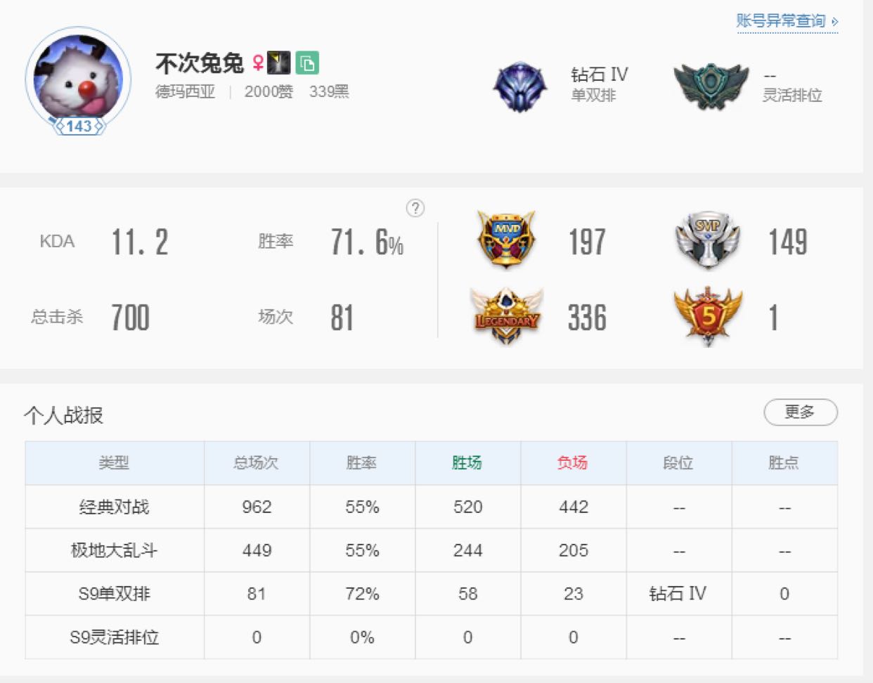 • 游戏区服:英雄联盟 / 联盟五区 / 德玛西亚