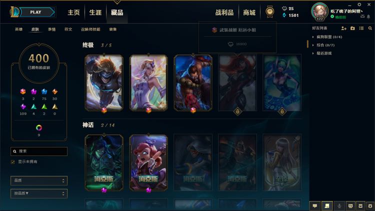 首页 > 租号大厅 > 英雄联盟 > 联盟二区/战争学院 > 全英雄黑龙虾海克斯年限等各种极品皮肤