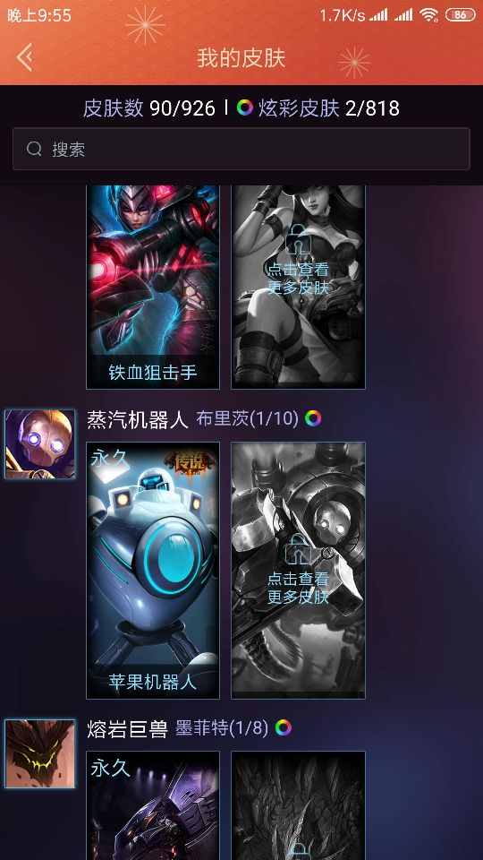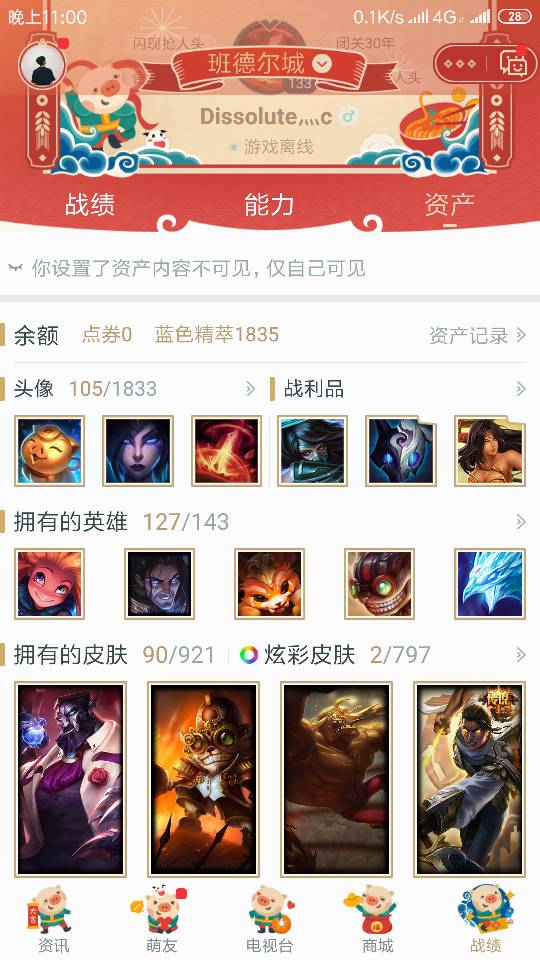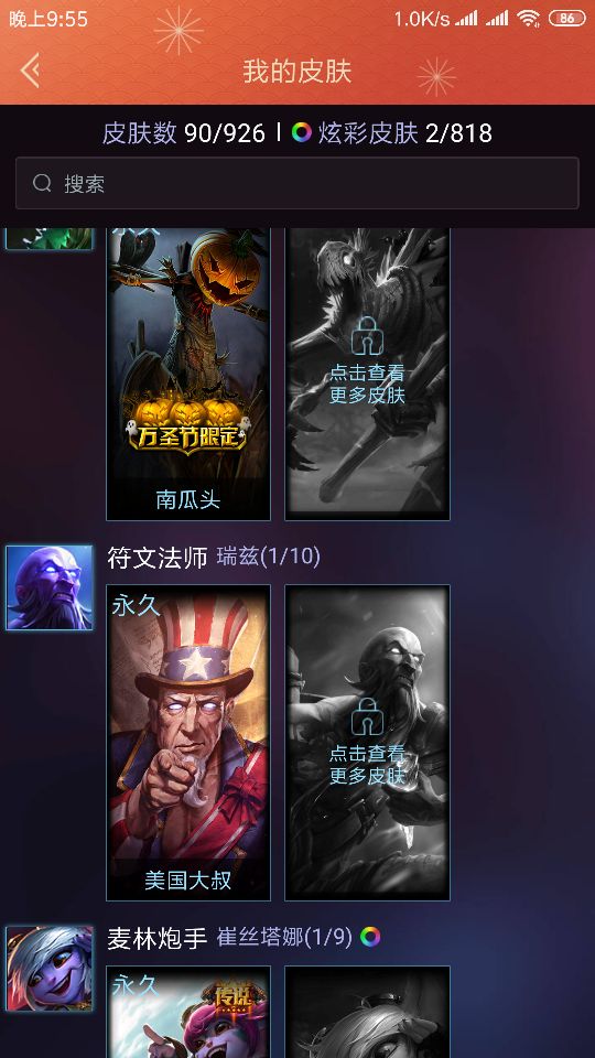 英雄129个皮肤90个 小成本过来看一看。。