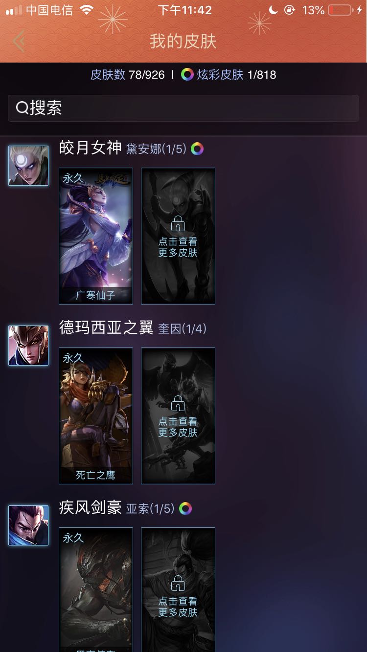 嫦娥,猴子万圣节,秦女平安夜,剑姬女校长炫彩,剑圣源计划,苹果机器人,潘森屠龙勇士,蛮王国王,绞肉机德莱文,亚索黑夜使者等78款皮肤,青铜五,可排位,蓝色精萃可随意使用