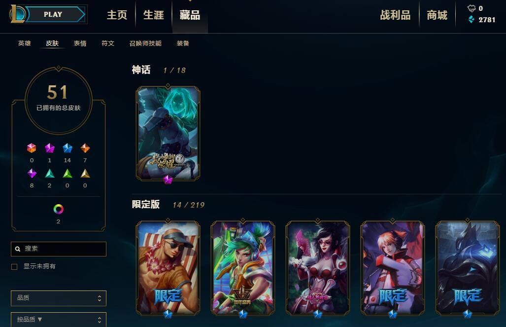 全网最低价~黑色玫瑰妹子号低价出租中[86英雄,51个皮肤]排位匹配随便打啊!